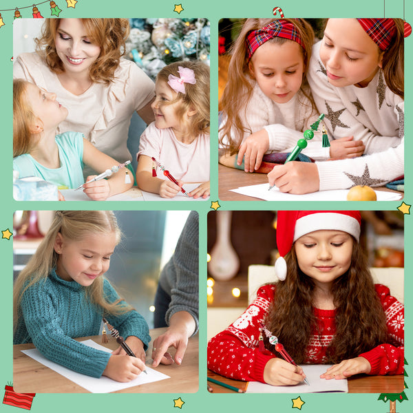 Material: This Christmas beadable pen is mainly made of plastic and metal material, which is lightweight and sturdy and can be carried around. It is easy to use as you just need to rotate the pen to write.