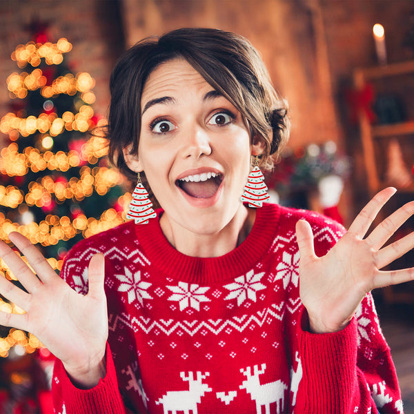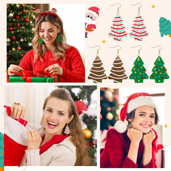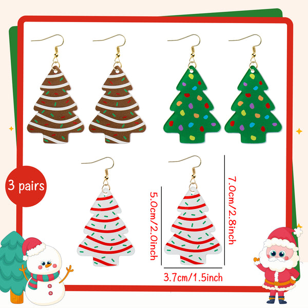 Lovely Earring Set: You will receive 3 pairs of Christmas tree cake theme dangle earrings. They come in three different colors, including white-red, white-brown and green. It has a Christmas tree pattern on both sides, so and the shiny earrings can be seen from every angle.